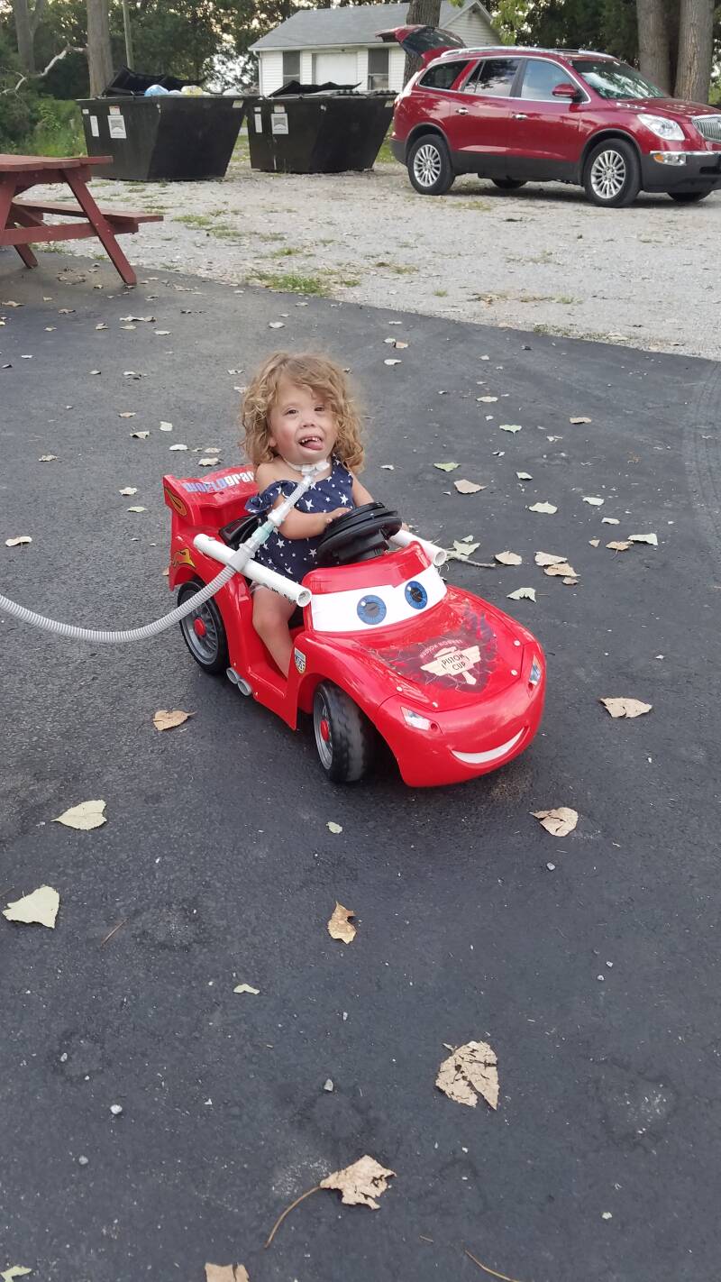 Thankfully, she really enjoys driving her battery-operated truck, which also holds the ventilator, so we don’t have to carry it all over the campground. Little Miss Popularity stops at every campsite with people outside to share a smile, which gives us ample opportunity to catch up with her 5MPH pace. We definitely get our steps in during camping weekends! In fact, it’s a total body workout with pushing her in the swings as well! We do tend to steer her away from lake activities as much as possible, but we’ve braved those waters on many occasions to let her live her best life.
