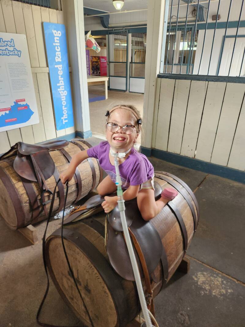 The itinerary for our final day in Lexington was a trip next door to the Kentucky Horse Park. We started the morning in the Kids Barn, and I think the girls would have been happy in there all day. The interactive exhibits were a big hit, all the girls loved sitting on the saddled barrels in front of the simulated horse racing screens.