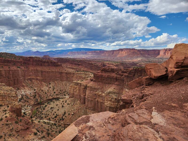 After a couple of hours, we were refreshed and ready for more exploration. We headed to the Goosenecks area on the west side of Capital Reef. Panaroma Point was beautiful, but we were blown away by Goosenecks overlook. A quick scramble up some slickrock and we found ourselves on a bluff looking out into the vast cavern below. Seriously, this place is like a smaller-scale Grand Canyon. Don’t miss this sight!